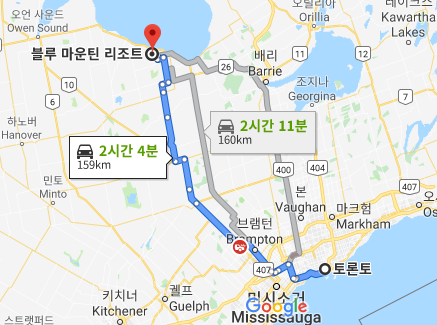 블루마운틴은 토론토에서 차로 2시간정도 걸린다